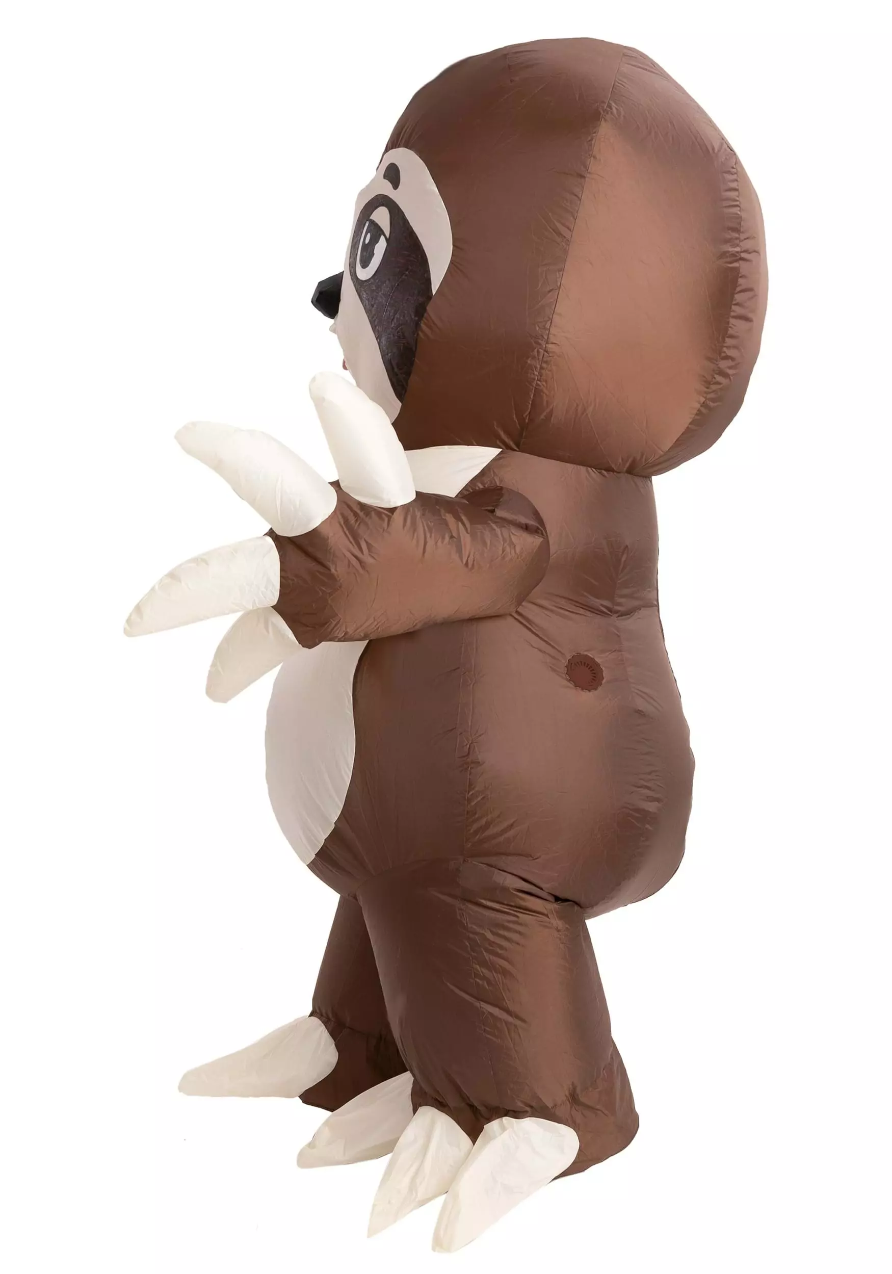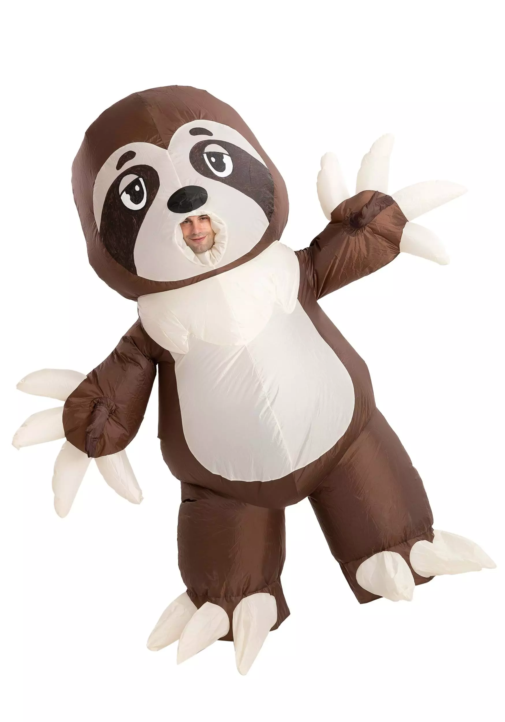 Do things at your own speed when you wear this laugh-out-loud Inflatable Sloth Costume for Adults! The one-piece outfit is made of sturdy white and brown polyester windbreaker fabric with a zipper up the back that makes it easy (although not necessarily fast) to get in and out of. A fan installed behind your left hip keeps you inflated for as long as you’re wearing the costume, and the fully enclosed feet, complete with faux sloth toes, ensures that minimal air escapes. Two attached sloth arms inflate until they stick out to each side as though ready for a giant sloth hug. Human-sized brown mitts are attached to each arm so that you can use your own hands. The fully enclosed oversized head is printed with eyebrows, eyes, a nose, and the mouth is fitted with a clear plastic viewing port. You’ll need to be able to see in order to pick out the perfect location for napping.Â