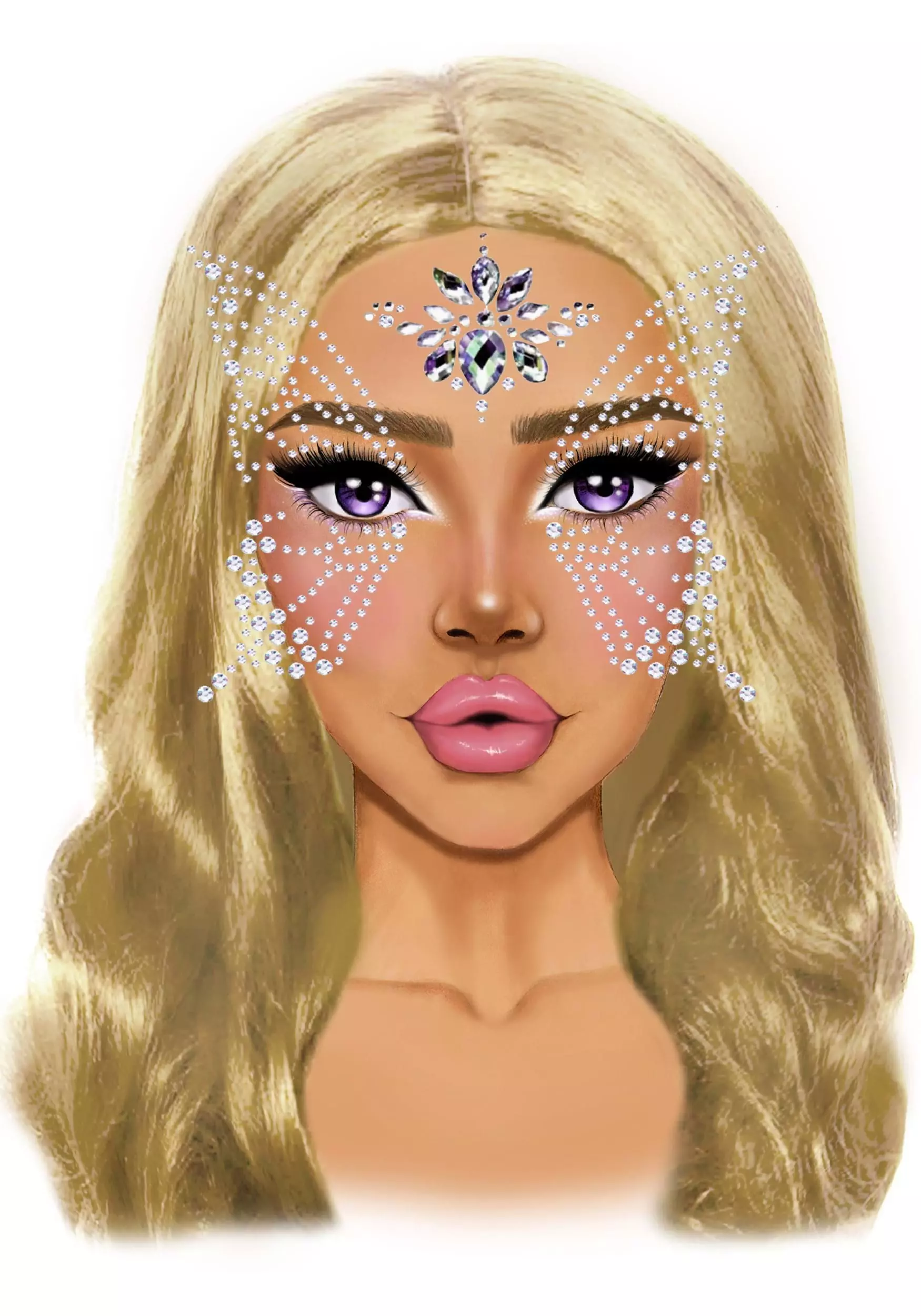 How do you tell if someone is a fairy? Usually, there are a few handy signs to go by. A true fairy has a passion for fun and a kind heart, but she also often has a uniquely magical accessory or two that you can’t find in the human world … such as gemstones attached to her face.Â