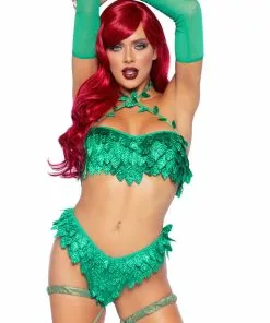 If you are looking for a costume that declares your love for plants and your love for style at the same time, this Sexy Poison Temptress Women’s Costume is the one for you! Its leaf-covered two-piece ties fetchingly in the back, so you can be sure that it will fit you perfectly. The vine-like straps give you that extra green touch that you wanted.