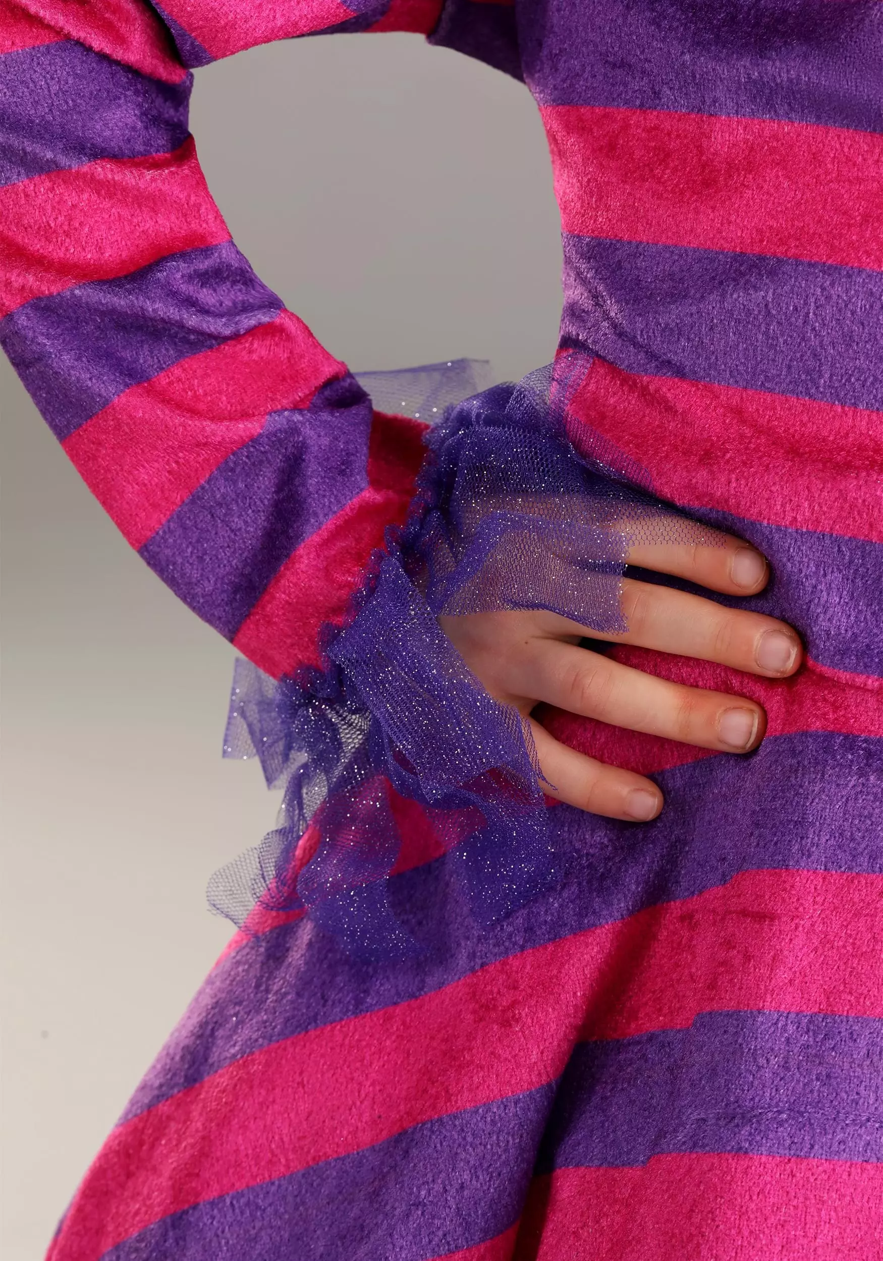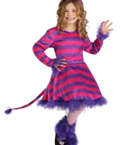 If your bundle of chaos loves to quote a certain mad cat, this Mischievous Cheshire Cat costume is the perfect thing! This is a Made By Us design from our in-house team and starts with a whimsical pink and purple dress styled after Cheshire’s classic appearance. Tulle fringe at the cuffs, hemline, tip of the hook-and-loop-attached tail, and ankle cuffs create the silhouette of a fuzzy feline while the fabric headband tops everything off with a pair of matching ears. All that is left is your tyke creating an amazing memory as this chaotic character.