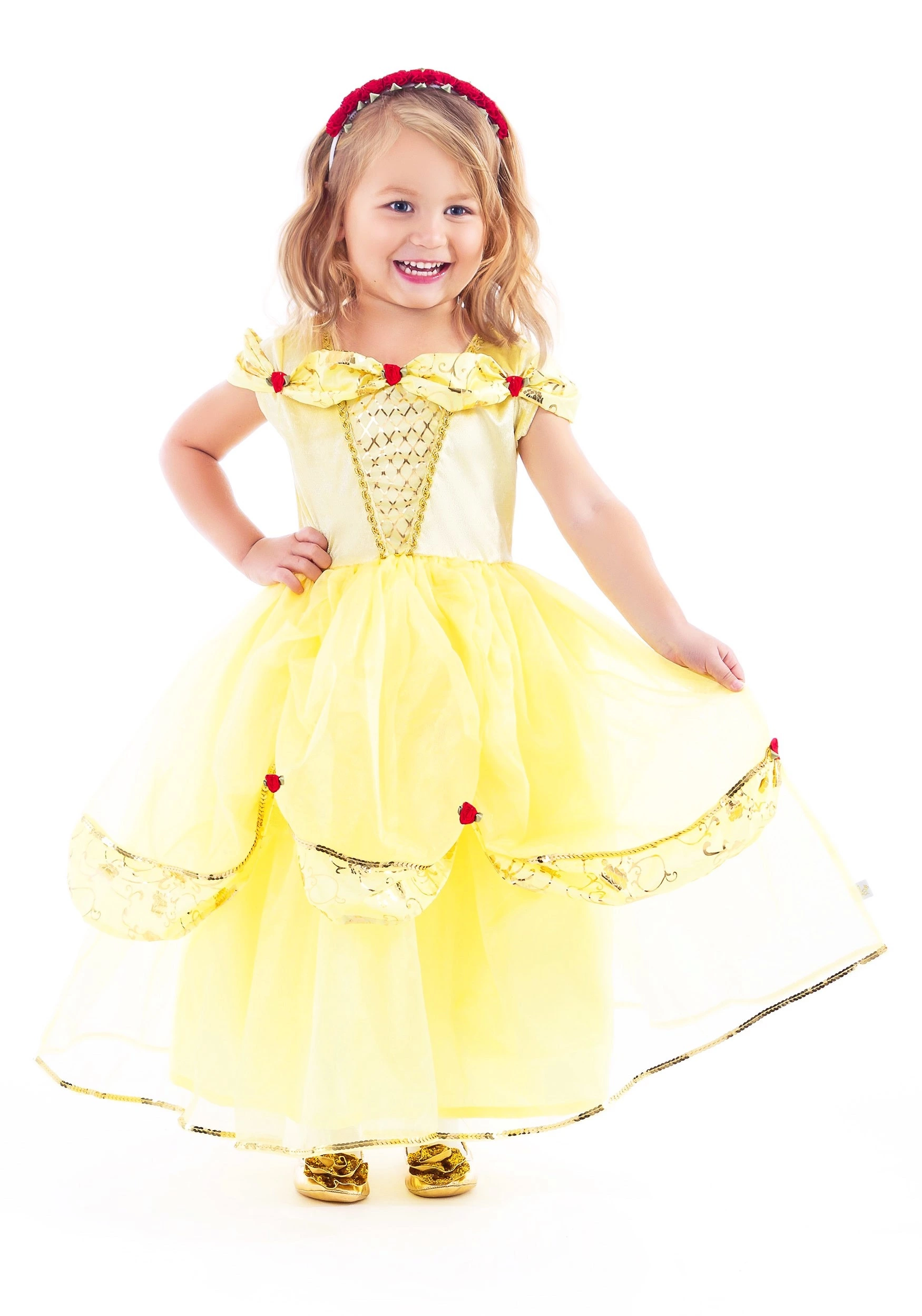Your daughter isn’t always a princess. Sometimes she’s all about stomping in puddles, playing with food, and cackling with mischief as she runs away from anyone who might be holding a hairbrush. But every once in awhile, you see the inner royal shine through. You see it when you’re twirling around the living room to Tchaikovsky or when she’s taking a nap in the mid-morning sun. There’s plenty to love when it comes to every side of your little girl but if you’re ready to let your little one’s inner princess loose, there’s no better way than providing a pretty princess gown such as this Yellow Beauty Costume!