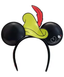 Set out to teach that giant a lesson in this officially licensed Loungefly Disney Brave Little Tailor Mickey Mouse Ears Cosplay Headband! The unisex headband is encased in black faux leather and decorated with two faux leather ears, one of which is printed with a cartoon fly. A mini tailor hat cutout embellished with a same-material feather is attached between the ears.Â