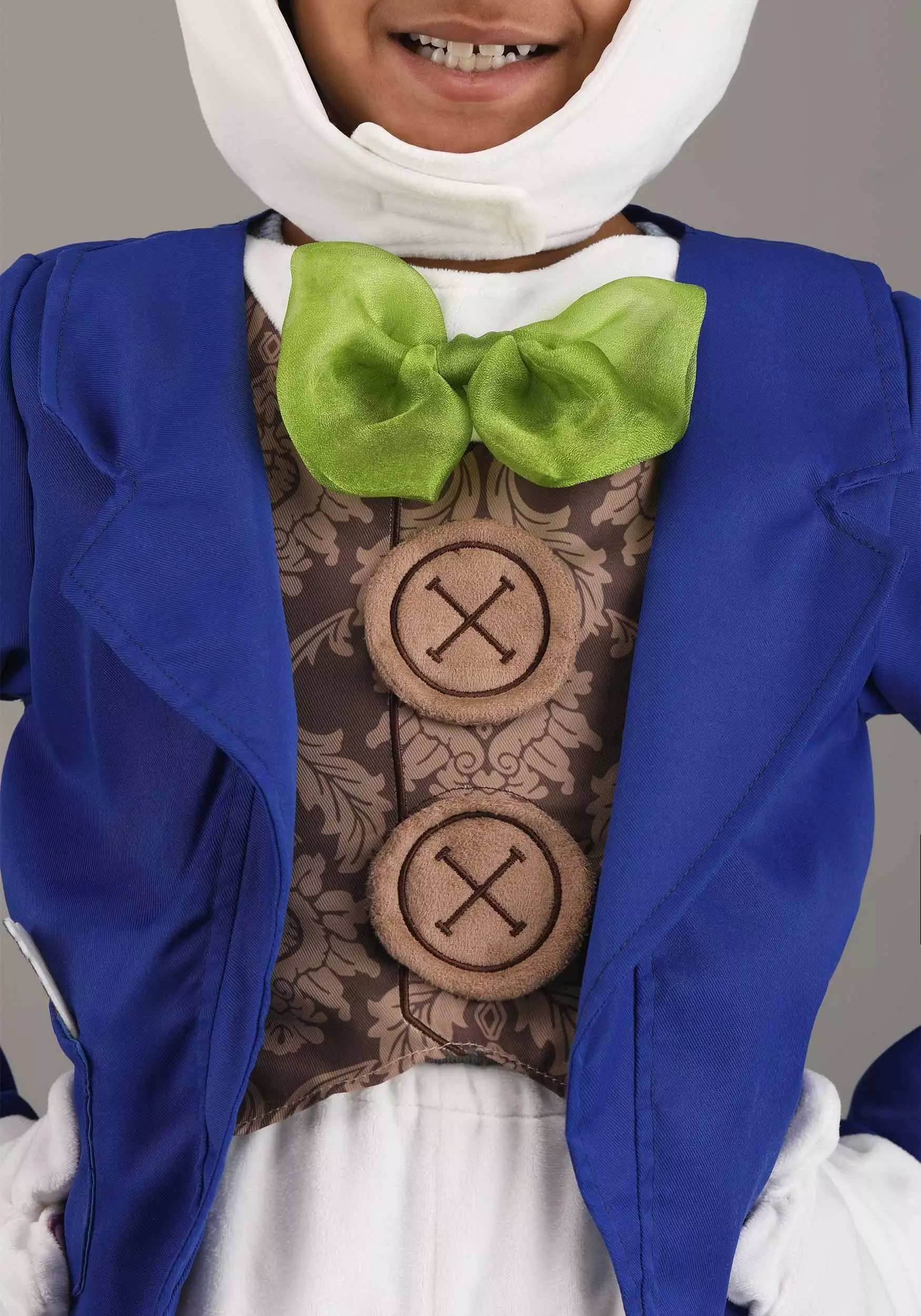 Transform your child into a time-conscious fantasy character with this Made By Us costume! The outfit starts with a jacket and vest combo that’s made out of velour and twill fabrics. The jacket is a rich, purple color with faux pockets and a felt pocket watch peeking out of it. The attached vest has oversized decorative buttons down the center, and it even has a green bowtie at the neck. The sleeves have attached mitts, which are shaped like a pair of rabbit paws!