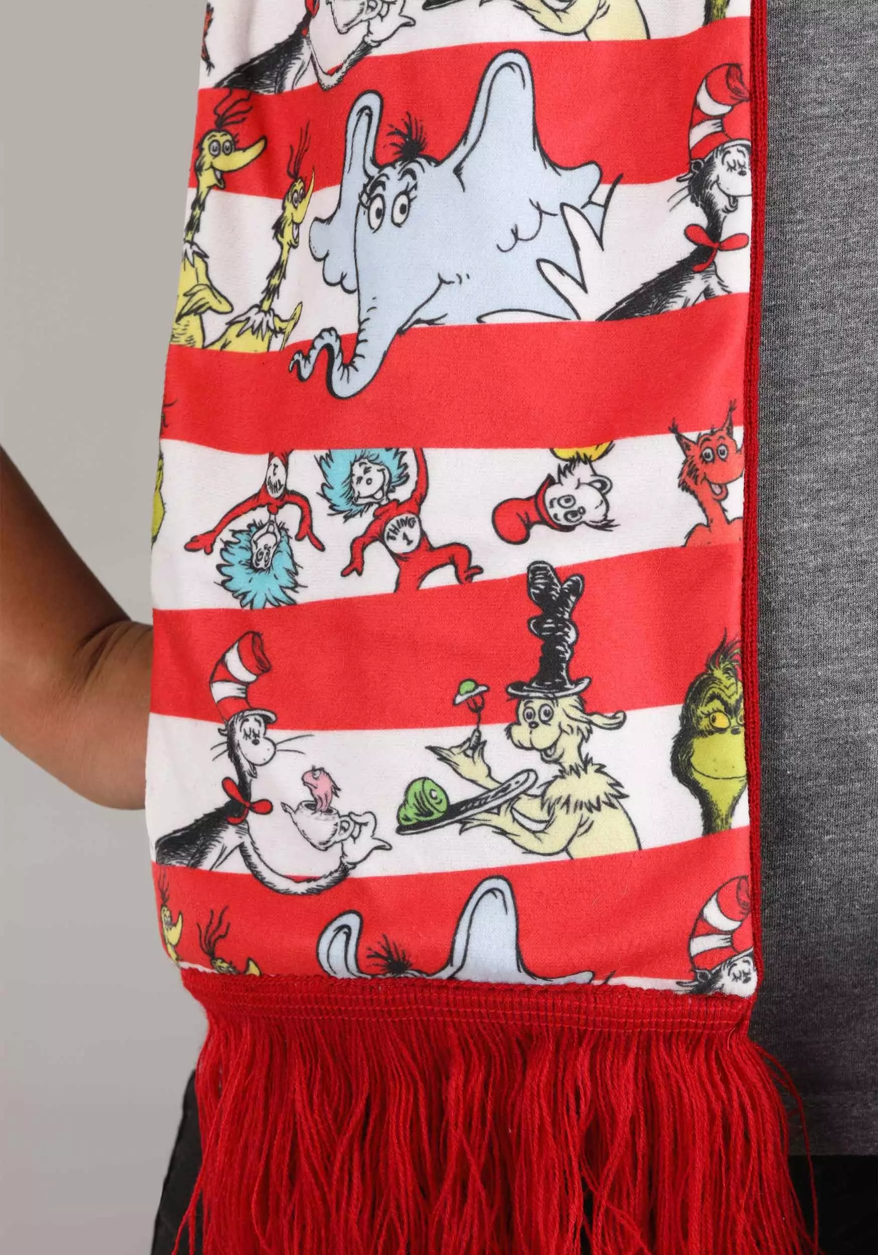 - Scarf has soft fleece fabric w/ Cat In The Hat graphics on one side