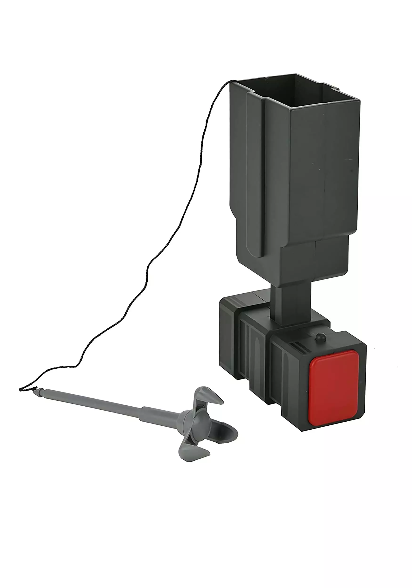 - Spring-loaded launch mechanism, motorized retraction mechanism