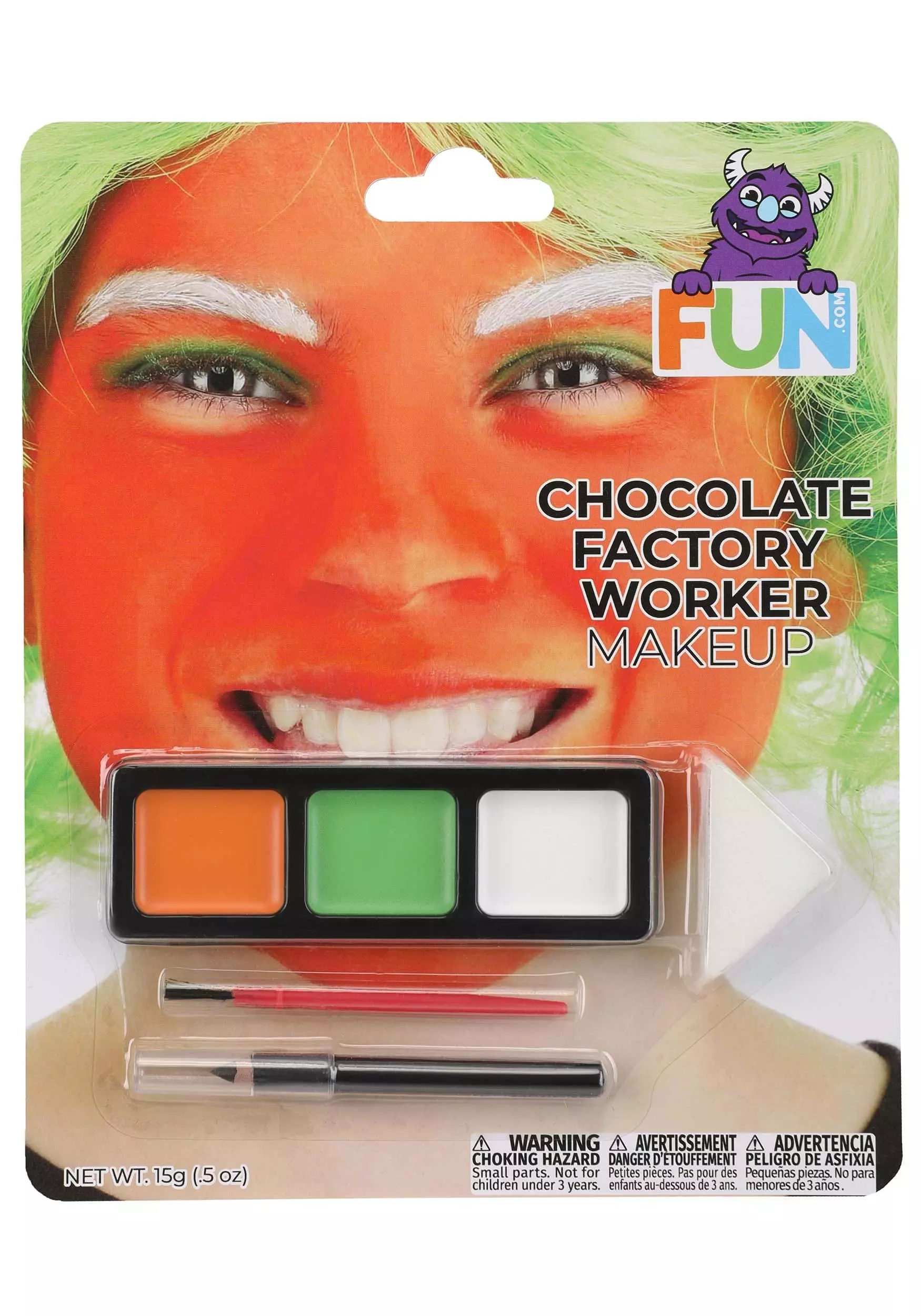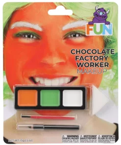 Head in to work at the most magical (and occasionally the most dangerous) place in the world after using this exclusive Chocolate Factory Worker Makeup Kit! The set includes a palette that contains orange, green, and white makeup, as well as an applicator brush and a black makeup pencil. Use the contents to give yourself a makeover worthy of a singing candy crafter!Â