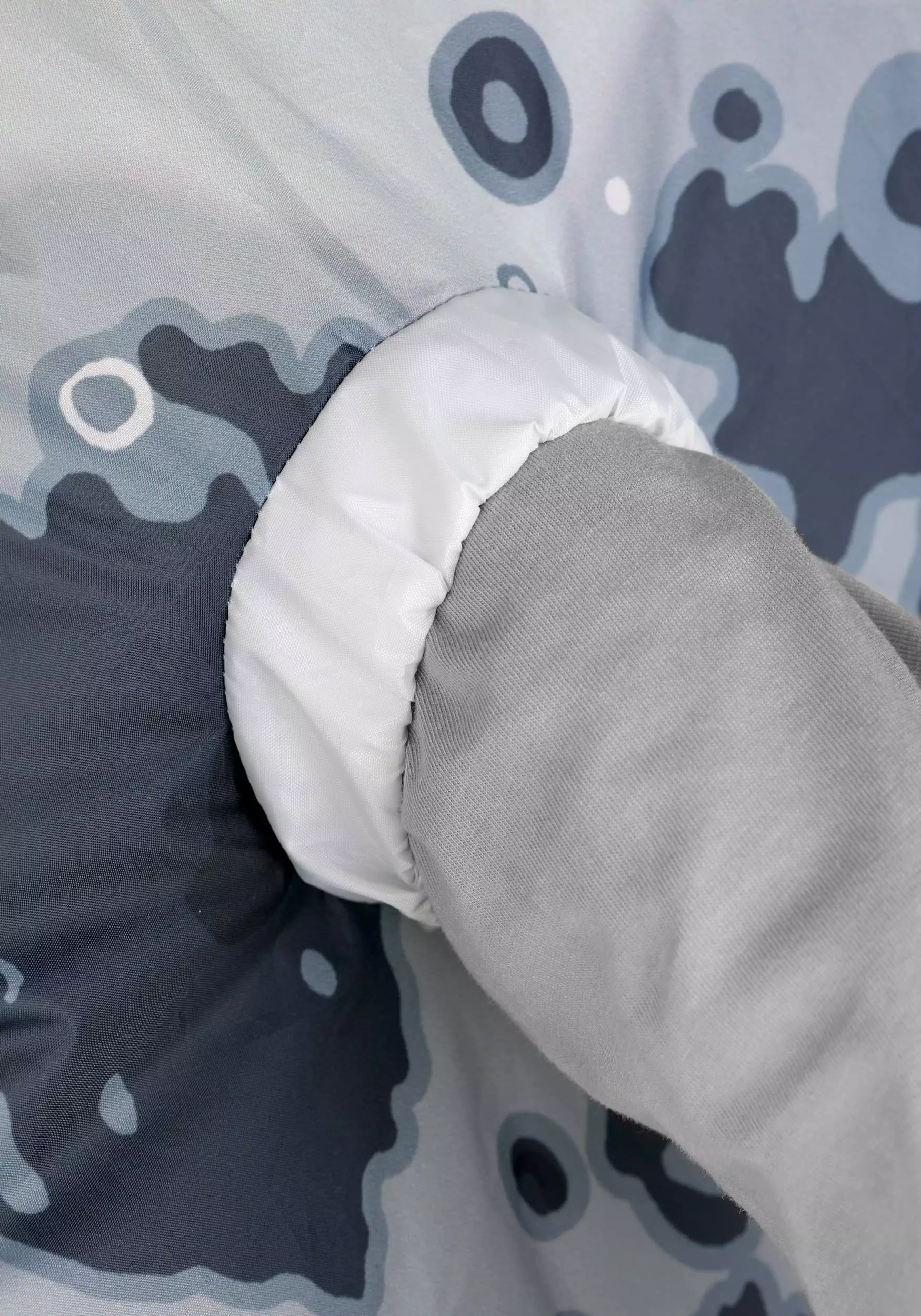 - Elastic at neck, arm, & leg openings