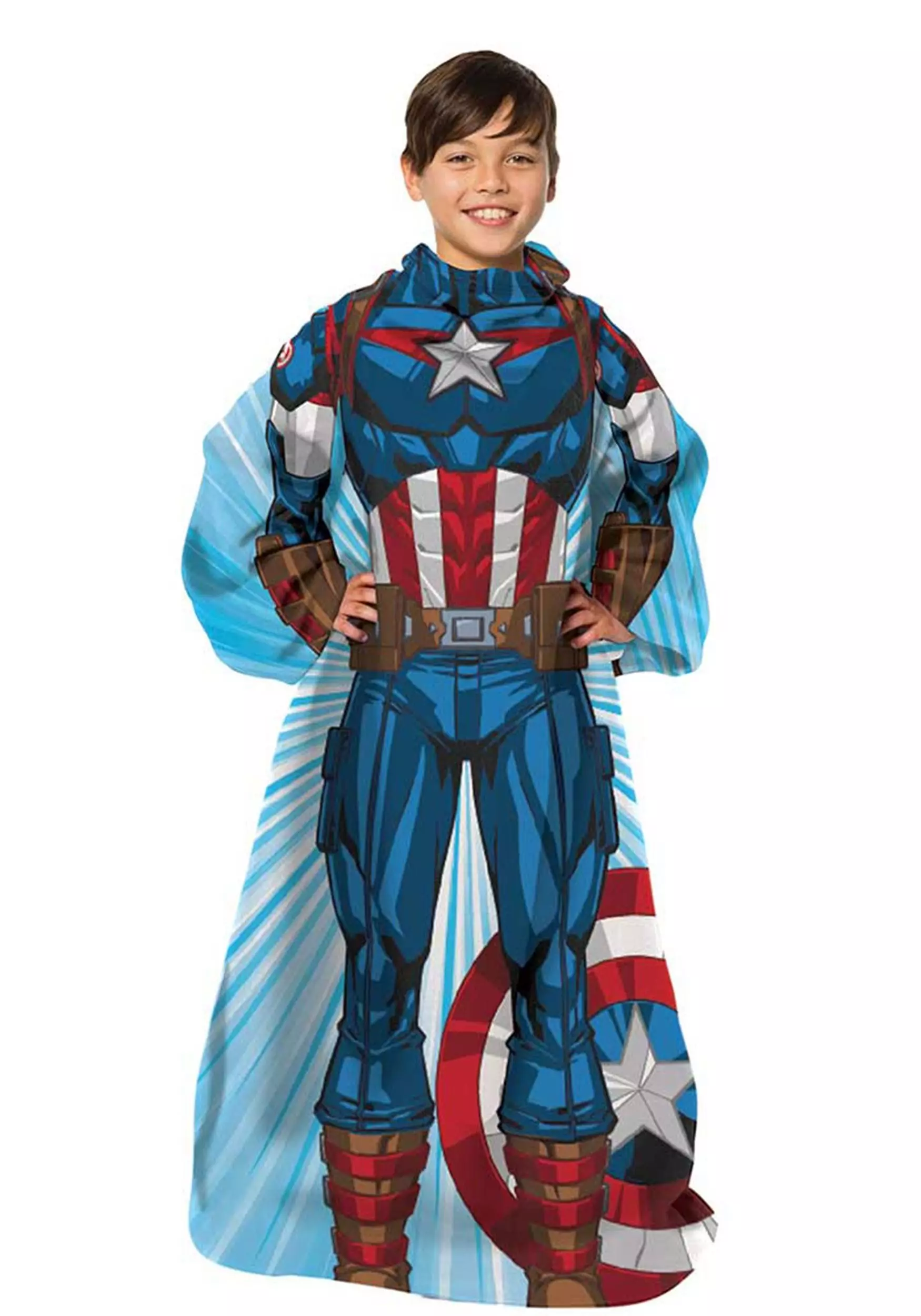 This blanket was designed by heroes to help and protect the innocent. It will help keep your child comfortable and protect them from the cold. How? Well, it’s all thanks to the attached sleeves. Without them, every time your little one reached outside their blanket they would constantly try to warm up again to regain the comfort they once had. Now, your kiddo will enjoy the luxury of constant warmth and comfort with this Captain America Juvy Comfy Throw Blanket. Not to mention, they’ll even look like America’s number one hero with Steve Rogers’ super-suit and shield printed on this sleeved blanket!