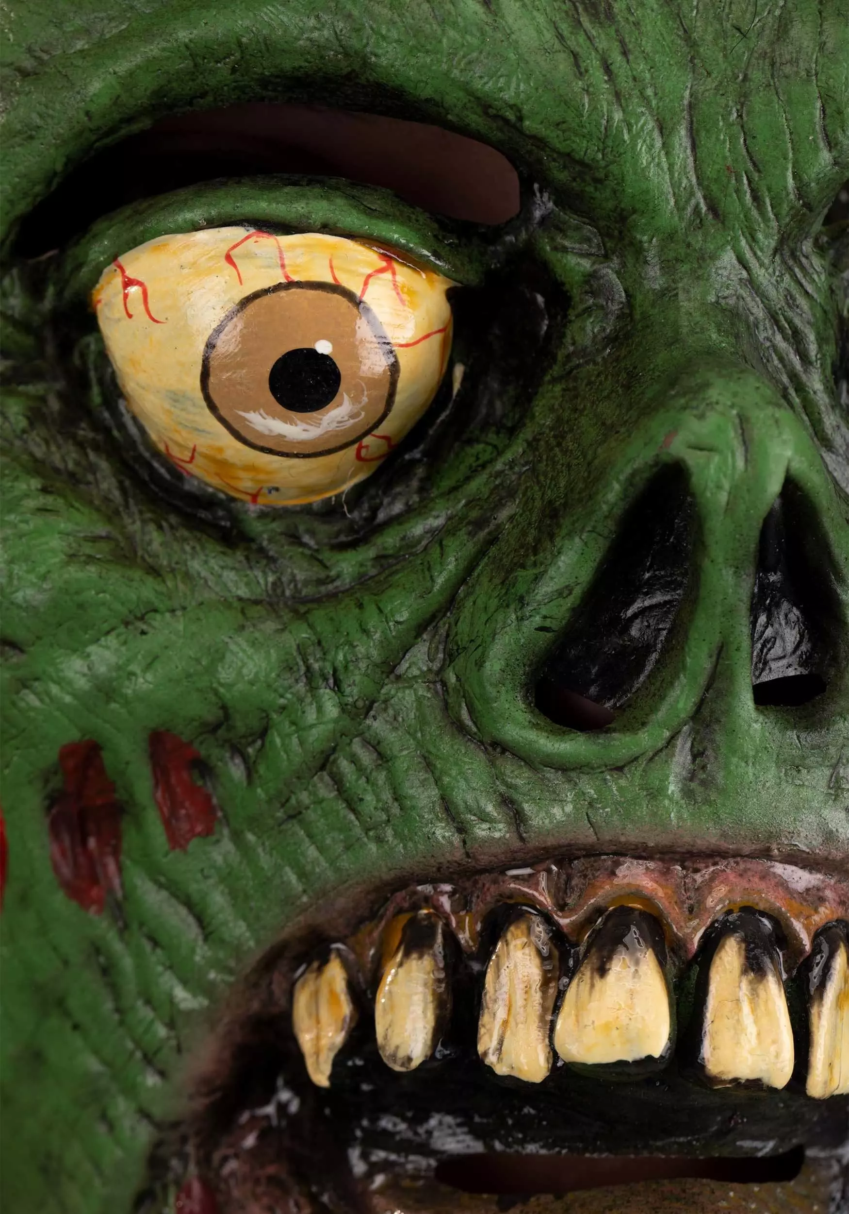 Pop out of your underground cavern to scare the pants off of passers-by in this Green Monster Full Face Adult Mask! The molded mask conceals your human features and gives you the appearance of a terrifying creature with one bulging yellow eye, a skull-like nose, and a gaping mouth filled with rotting teeth. Tendons stretch over what looks like raw flesh. Charming!Â