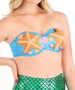 This exclusive Mermaid Seashell Bra is fit for a gorgeous aquatic princess! A lovely aquamarine frame is adorned with pink and yellow seashells and orange starfish. The comfortable bra clasps securely in the back so that even the roughest seas won’t shake your confidence in your swishy sense of style!Â