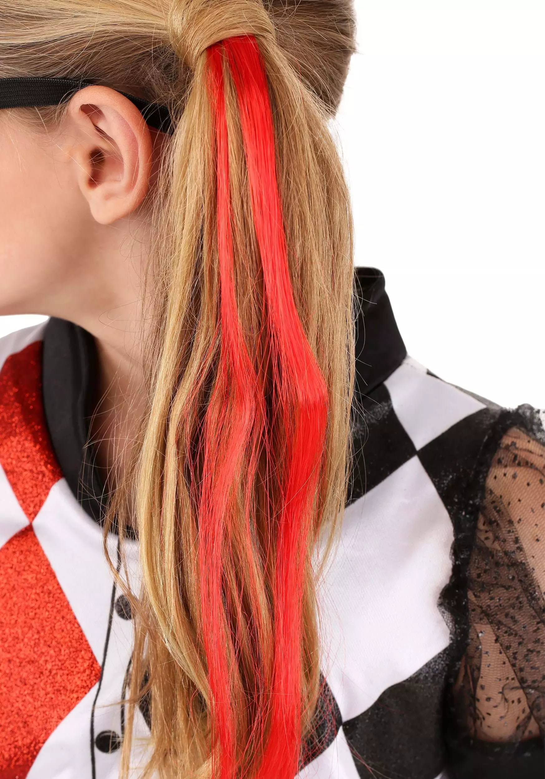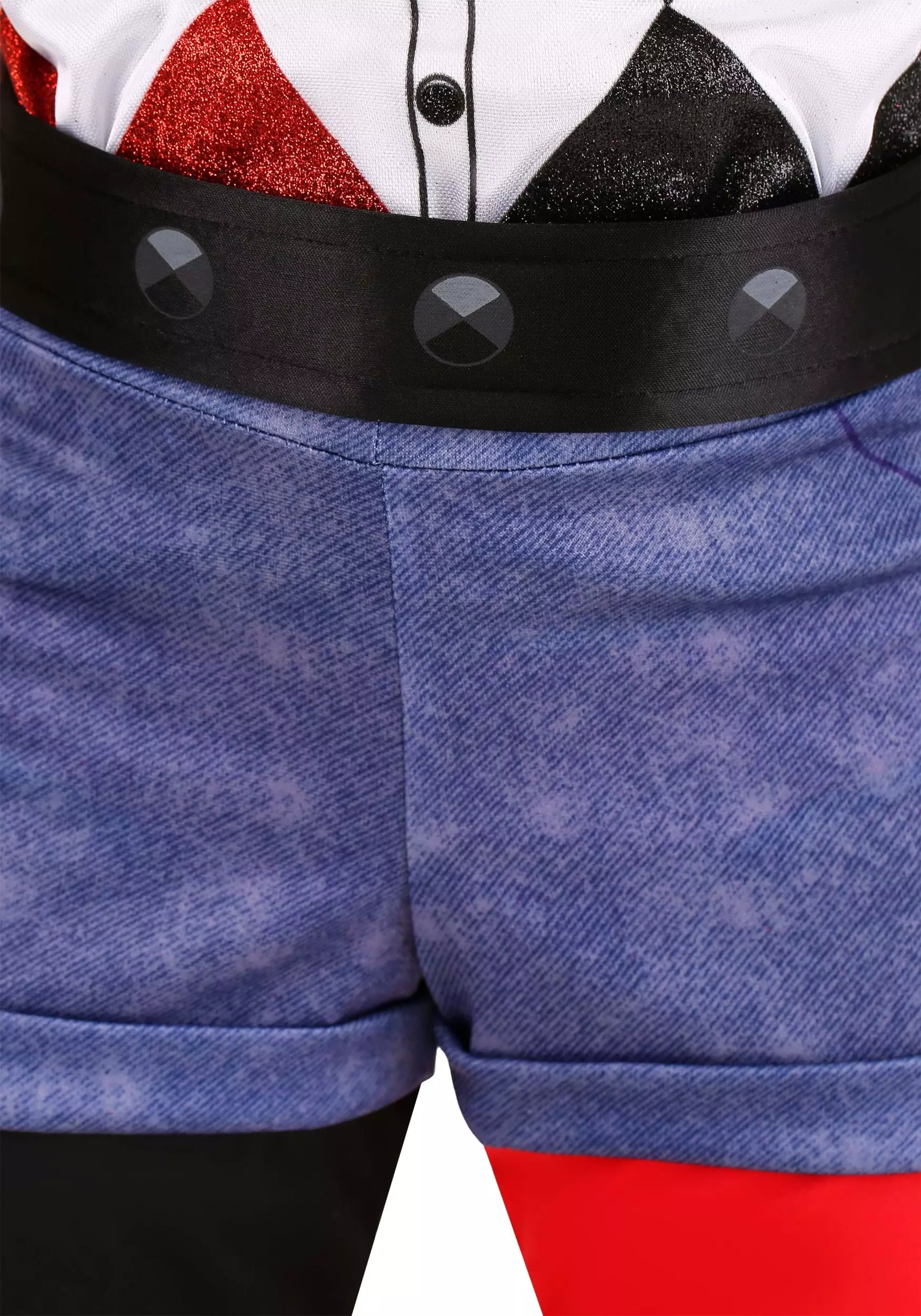 Harley may seem a little disorganized, but her goofy style totally works, and it makes this a fun costume to clown around in. The stylish top is printed with a black and red “harlequin” pattern (Ha! We just got that!). Since Harley is such a talented gymnast and incorporates acrobatic moves into her pranks, she never goes anywhere without her trademark half black-half red tights and shorts. Top this outfit off with the included bandit mask, arm cuff, and colorful hair attachments, and your little joker will be ready to brighten all her super-classmates’ days!