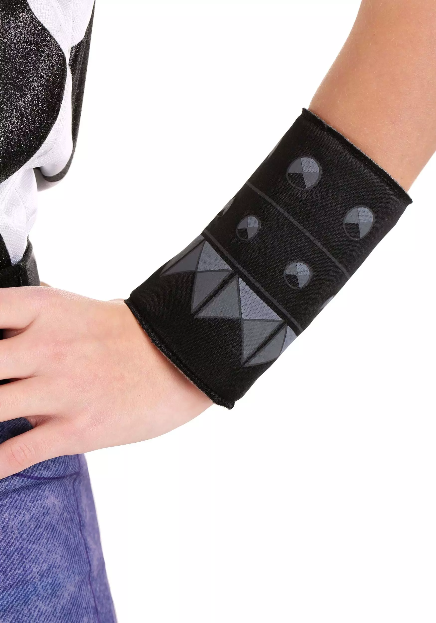 - Cuff and belt are both printed foam with Hook and Loop fastener on the cuff and tie on the belt