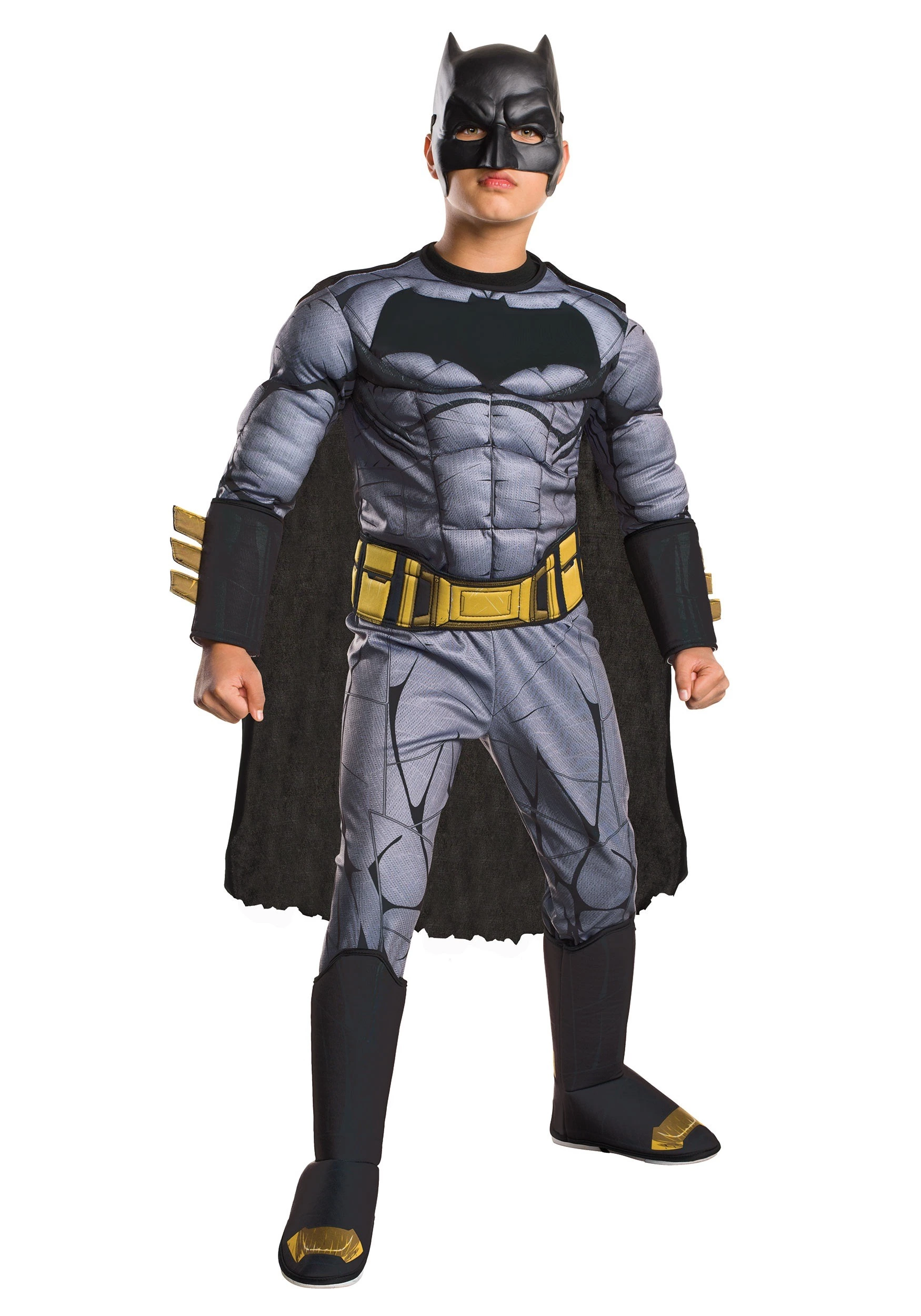 Every kid knows that when the Caped Crusader sets out to do something, he doesn’t stop until it’s done. And, now Batman has got a beef with Superman, so he’s going to see just how “super” that Kryptonian really is! Your kid can look just like the Bat in this awesome Deluxe Dawn of Justice Batman Costume, and go toe to toe with the Man of Steel, like in Batman V Superman: Dawn of Justice!