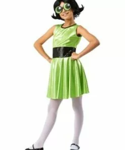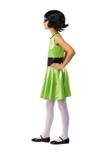 Inspired by the iconic tough-girl Buttercup, this officially licensed costume comes with everything your child needs to fight crime in the City of Townsville! The outfit starts with a bright green dress, just like the one seen in the cartoon series. The sleeveless style helps make this dress comfy, and easy to wear for any young fan. The waist has an elastic band in the waist to help provide a comfortable fit, and the black band around the waist.