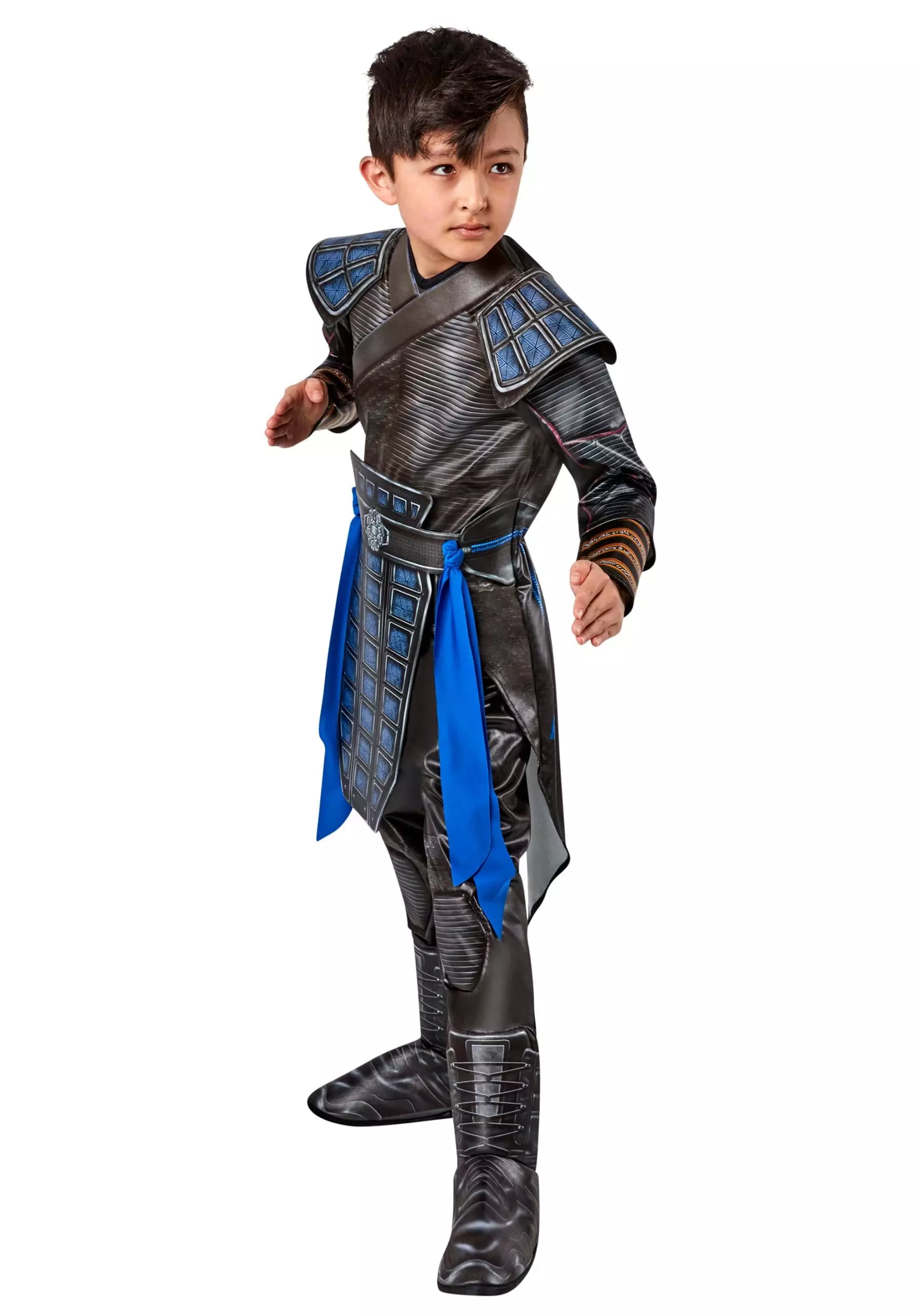 Whether you have a heroic child or one bent on world domination, you know you can’t go wrong with decking him out in this Deluxe Wenwu costume from Shang-Chi and the Legend of the Ten Rings. This is an officially licensed tunic designed to look like the combat armor of the eternal warrior, himself. Foam panels at the shoulder and waist give the costume a hint of sturdy structure while brilliant blue and dark colors bring the character to life. Matching pants, boot covers, and detailed printed rings at the forearms finish the look and keep your tyke in fighting form. If your child happens to find a magical artifact of cosmic power levels, they’ll be ready to go when you have them equipped with this realistic costume!