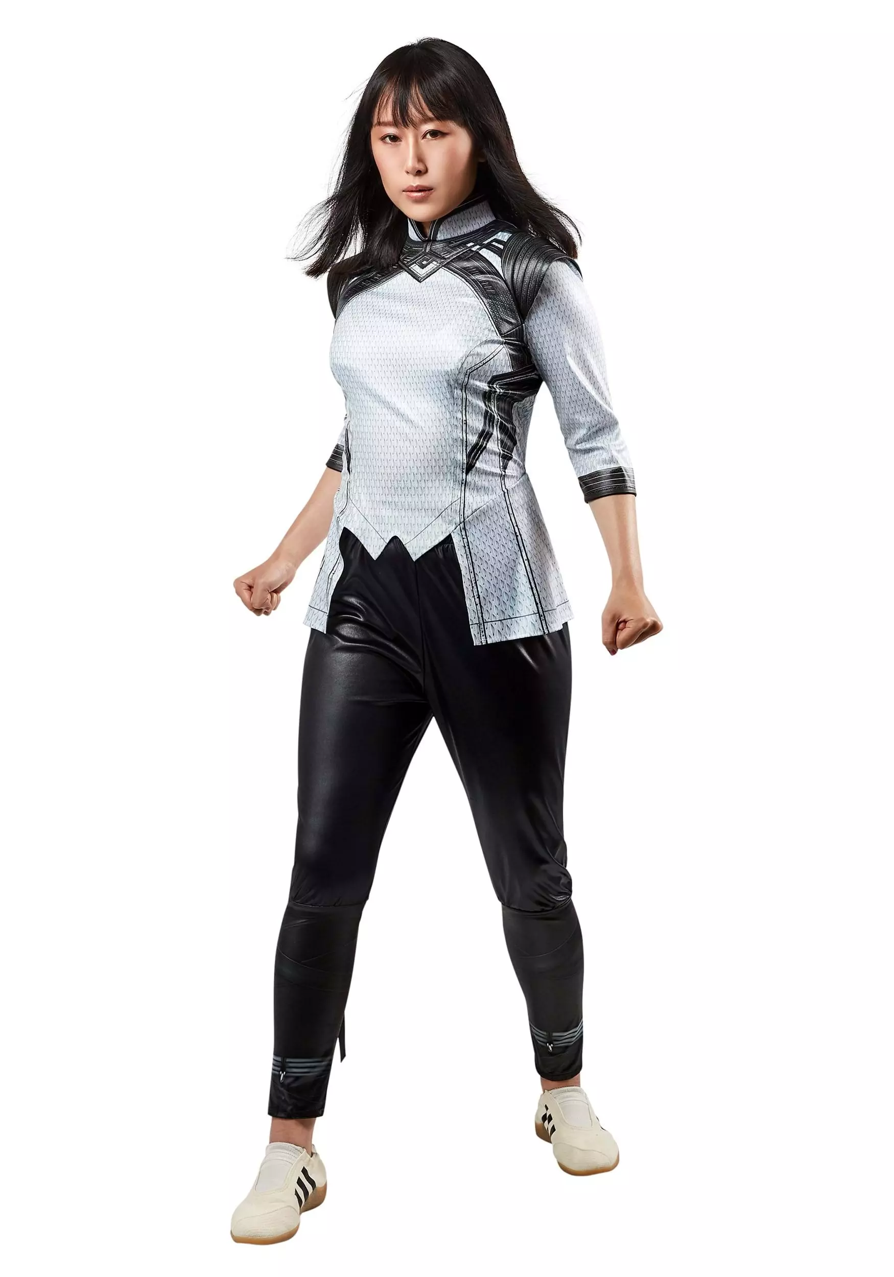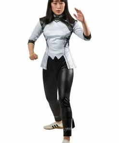 Help pave the path of the Ten Rings when you wear this officially licensed Xialing Deluxe Costume from Shangi-Chi and the Legend of the Ten Rings. This costume is inspired by the look of Xialing’s draconscale armor in the battle for Ta Lo. The shiny black pants have an elastic waist and ankle ties for a warrior’s fit. The shirt is printed to replicate the look of scales and includes a sewn-on, shiny shoulder harness that fastens with hooks and loops in the back. Complete a group costume with Shang-Chi or save (or claim) the world on your own as this self-taught warrior woman!Â