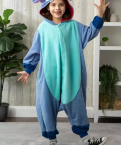 This Stitch Kigurumi is a Japanese-style pajama costume based on your child’s favorite cartoon character! And what could be more perfect than a soft pair of pajamas to play in? It’s a simple blue jumpsuit that’s made out of an ultra-soft fleece fabric that’s cozy for sleeping and comfy for playing. It fits with buttons down the center, so your little one can wriggle into it with ease. It even features a pair of pockets, one on each side. Of course, the best part about this costume has to be the hood, which is shaped like Stitch’s head, complete with appliqued details and a pair of floppy ears. Your child will be ready to head to a costume party… or a slumber party in this comfortable and cozy costume!