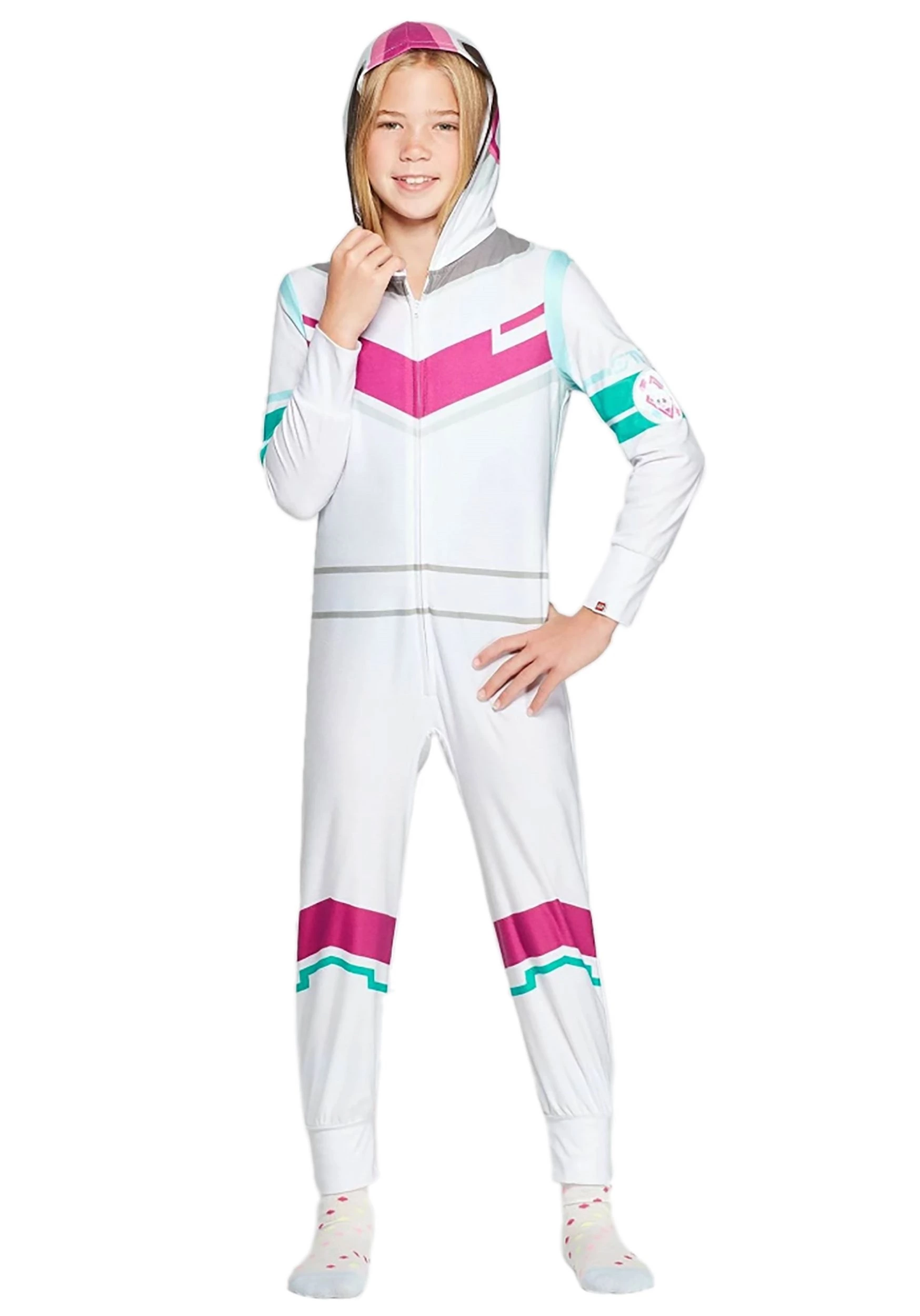 Inspired by Sweet Mayhem’s futuristic outfit in Lego Movie 2, your child will look as cool as the Lego character without all the cumbersome accessories. The attached hood is detailed after Sweet Mayhem’s helmet, so your child will be ready to face pillow-fighting danger without pulling on heavy-duty headwear. Whether they’re out on a Halloween adventure or lounging around the house, the open-ended legs let your kid choose the most comfortable footwear. Though the jumpsuit doesn’t have wings, the light-weight costume gives your kid the option to layer on or leave off a glittering pair of their own.