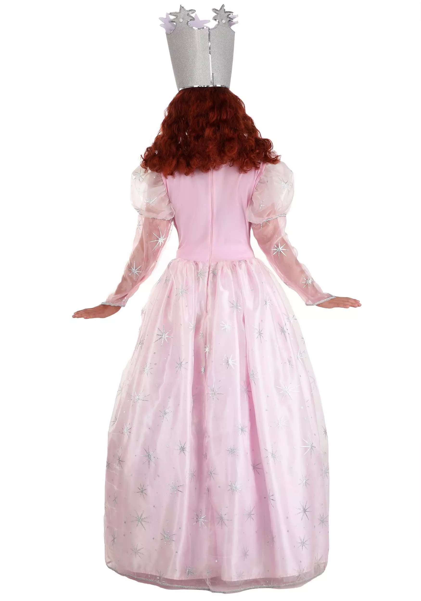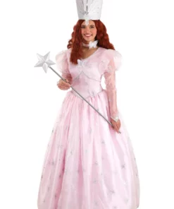 Remind Dorothy to close her eyes, tap her heels together, and tell herself that there’s no place like home! This exclusive Deluxe Good Glinda Costume for Women will infuse your next costume event with the magic of a wonderful fairy tale. A long pink gown with an top layer of silvery mesh decorated with sparkly star detail will make you feel like a magical queen. Puffed sleeves and a silvery butterfly choker add to the fun, as does the tall silvery crown decked in sequins.