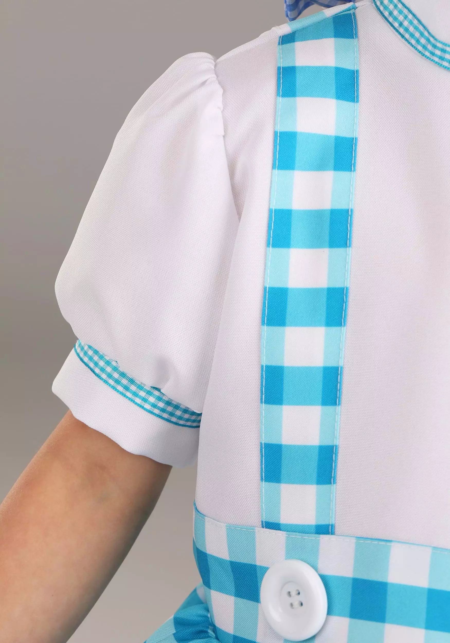 Help your kiddo keep that at-home feeling with this Gingham Kansas Girl costume for toddlers. This poplin dress zips up the back and has an elastic waist to keep it looking fresh and fit. Blue and white checkers make up the apron style skirt of this one-piece dress and decorative buttons at the waistline maintain the illusion. Your kiddo can twirl around in this dress for any fancy gathering or whenever they expect to adventure into another world. Just pick up a little basket for your kiddo to carry, too, just in case!