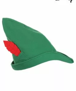 Fly past the third star on the right and straight on till morning when you wear this Men’s Disney Peter Pan Hat in Green! This take on the iconic hat worn by a legendary character is made of soft green fleece fabric and has an upturned brim that comes to a point at the front. A soft red felt “feather” is attached to the side.Â