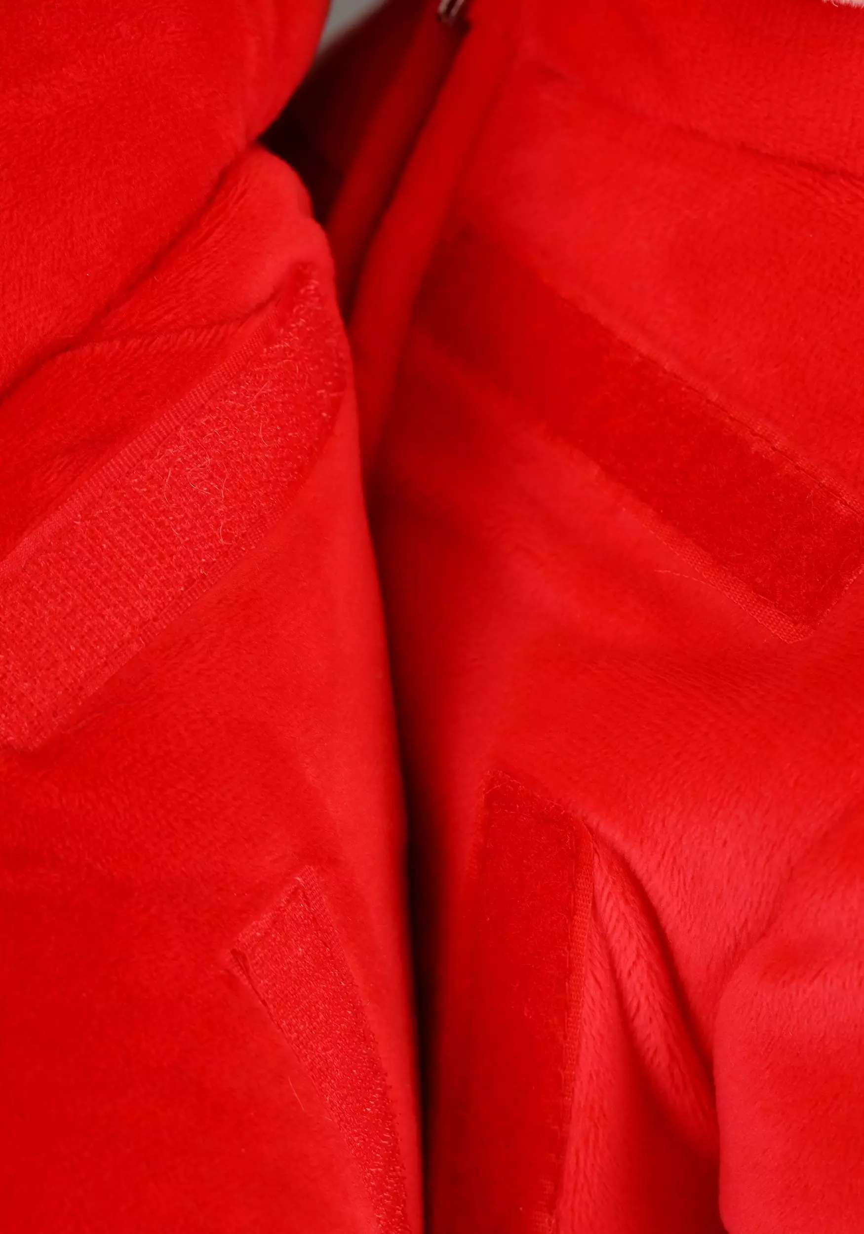 - Foam-backed minky shell secures to the back of the bodysuit w/ hook and loop fasteners