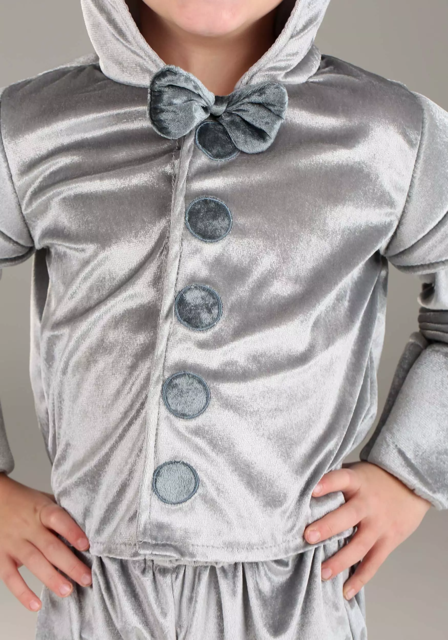 This costume was crafted in our in-house design studio, with the utmost attention to detail and quality. It’s a two-piece look that totally transforms your tot into the iconic Tin Man. The detailed shirt and pants are both made from a plush material that catches the light to look metallic, while simultaneously keeping your kid warm on a chilly October night. There is an attached hood on the shirt that provides the Tin Man’s oil can cap, and the leggings provide attached shoe covers.
